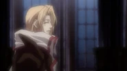 Later, Cain leads the Rosencreutz Orden on an attack of Albion and the two brothers have their first clash. Cain kills Abel with relative ease while Abel is distracted by Esther Blanchett who stumbled upon them. Realizing Abel had destroyed the control panels of the rocket, he plans to merge himself with Abel's body to get the access codes from Abel's memory. However, Abel is revived with Lilith's nanomachines thanks to Cardinal Caterina Sforza and Hercules Tres Iqus. This puts Abel at the same power level as Cain and their next clash ends in a draw. Accompanied by Ion Fortuna, Abel has pledged to hunt Cain for eternity, if need be, until he is destroyed.