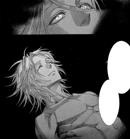 But Somewhat tragically, Cain still appears to be capable of experiencing a facsimile of love, particularly for Abel Nightroad. For instance, when he met Abel for the first time after nine hundred years, he greeted him with tears in his eyes and apologized for having left him alone for so long. But a few moments later he violently blew away Abel's head, and afterwards he lovingly embraced his brother's headless body. He seemed later to show no regret for his actions while speaking with Isaak Fernand von Kämpfer about Abel's death (Isaak in fact seemed more concerned about it than Cain did) and maintains a kind of childish apathy when speaking of the subject.